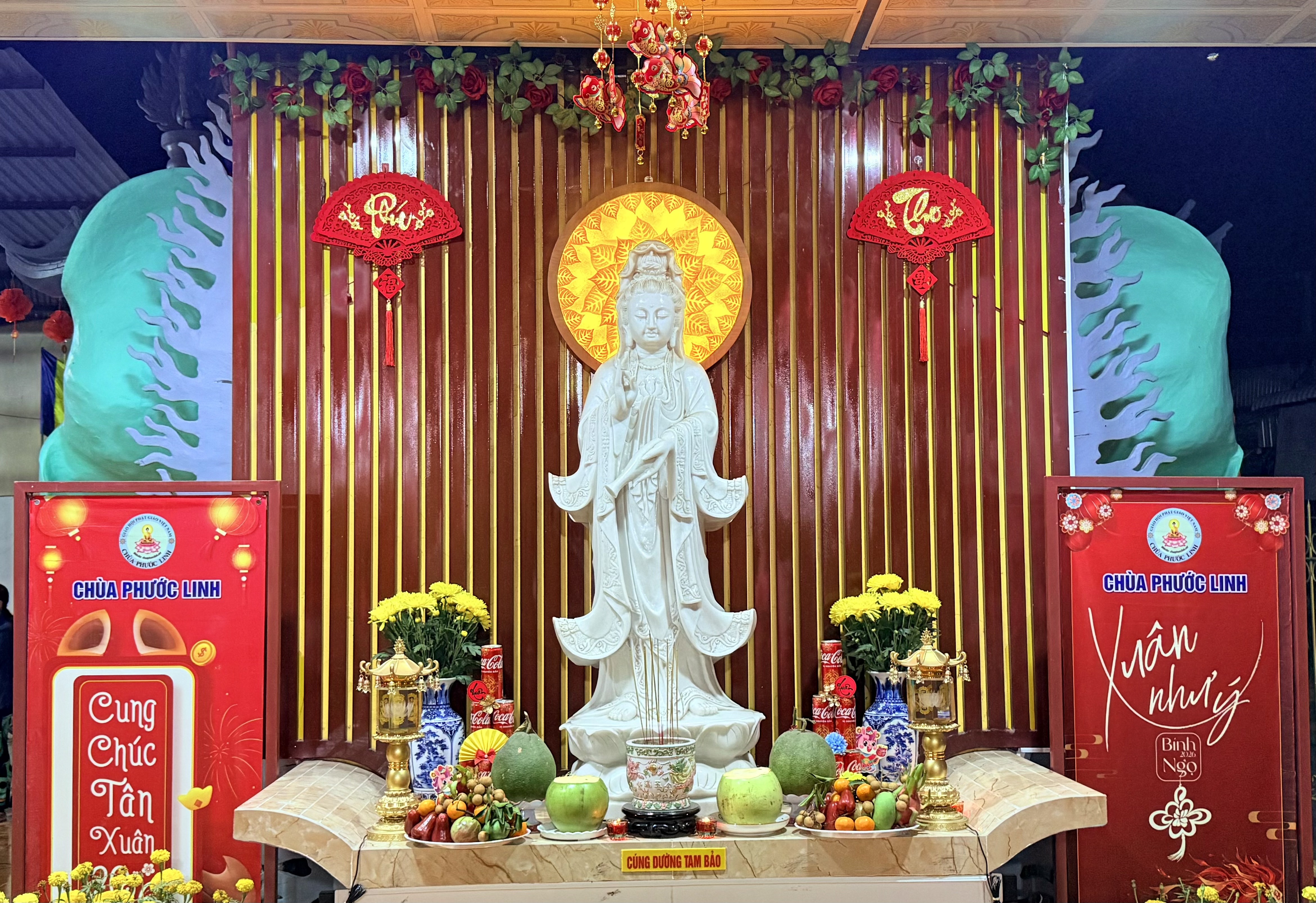 Vào lúc 18:00' ngày Mùng 08/Âm lịch hằng tháng và các ngày lễ Vía Quán Âm (19/02, 19/06, 19/09/ Âm lịch), chùa Phước Linh đều long trọng tổ chức khoá tu đảnh lễ 500 Thánh hiệu đức Bồ-tát Quán Thế Âm, được đông đảo quý Phật tử gần xa trở về tham dự.